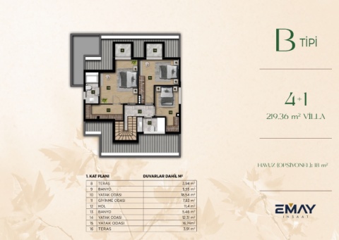 7 TERAS 33,66 m 2 15 YATAK ODASI 16,74m 2